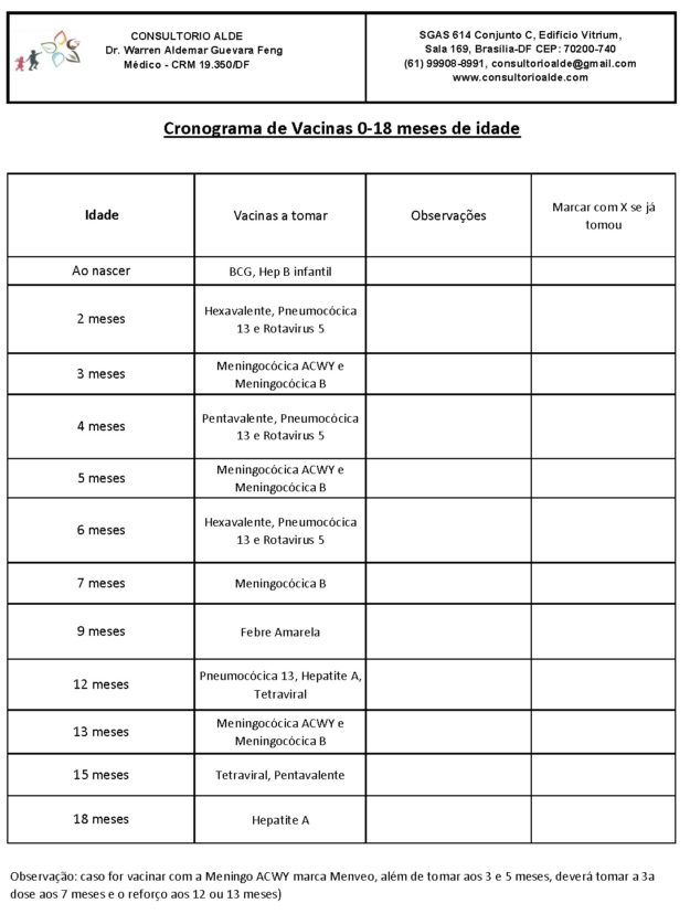 Cronograma de Vacinação de 0 a 18 meses. Sem categoriaPor Warren Aldemar Guevara Feng12 de julho de 2018